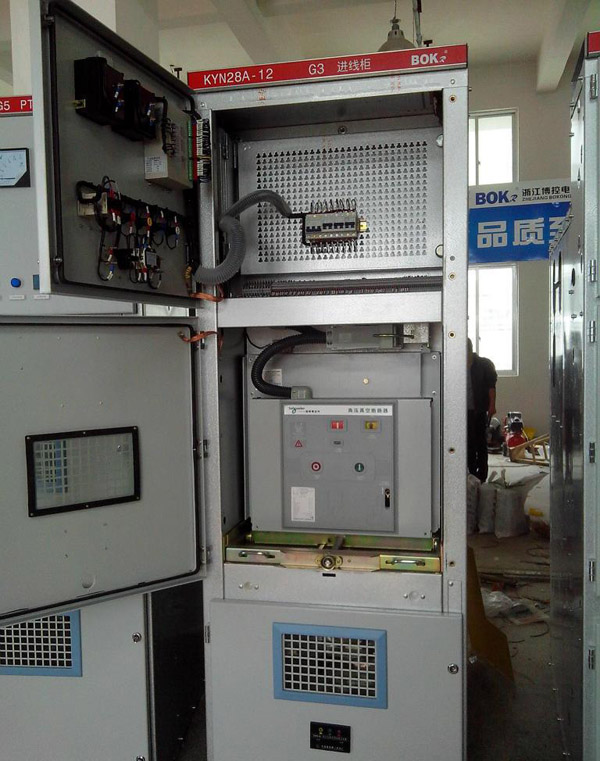 KYN28(GZS)型戶內金屬鎧裝抽出式開關設備(以下簡稱開關設備)。該開關設備系3-10KV三相交流50Hz單母線分段系統(tǒng)的成套配電裝置。主要用于發(fā)電廠、中小型發(fā)電機送電、工礦企事業(yè)配電以及電業(yè)系統(tǒng)的二次變電所的受電、送電及大型高壓電動機起動等,實行控制保護、監(jiān)測之用。具有防止帶負荷推拉斷路器手車、防止誤分合斷路器、防止接地開關處在閉合位置時關合斷路器、防止誤入帶電隔室、防止在帶電時誤合接地開關的聯(lián)鎖功能,既可配用VS1真空斷路器,也可配用ABB公司的VD4真空斷路器,是一種性能優(yōu)越的配電裝置。